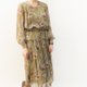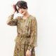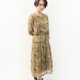 - 复古春夏日本制典雅大人感橄榄黄绿变形虫图腾宽松长袖古着洋装