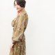 复古春夏日本制典雅大人感橄榄黄绿变形虫图腾宽松长袖古着洋装-D409