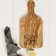 这款橄榄木砧板是由整段的橄榄木裁切制作而成,一体成形~在砧板的表面可以明显的看到木头的纹理,还有用雷射雕刻而成的一段文字:Food! Wine! Friends! 手工打磨,厚实质朴,结合橄榄木特有的节理与节疤,每款的花纹都值得您细细赏味。