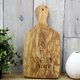 在国外,橄榄木砧板除了可以用来当各种切菜、切肉的用途外,也常常用来作为切面包、起司的专用砧板。当然,因为橄榄木美丽独特的图纹,也可以当作肉品水果的盛盘,直接端上桌,美观又大方。砧板的握把处有圆孔设计,除了方便拿取,也可以挂立在厨房的挂钩上~十分便利~