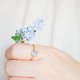 这款简约易衬的植物系戒指,将勿忘我干燥花封存于树脂之中。淡雅的蓝色花朵为指尖带来一抹低调的色彩。