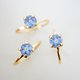 细小的勿忘我花朵,镶嵌于金色系的台座上。透过通透的树脂,花朵自然的色彩与姿态清晰可见。由于是手工逐一制作,每朵花的表情与配置皆略有不同。