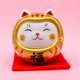 - 金色达摩招财猫,象征金运招来与开运招福。手绘瓷器质感细腻,附红底垫,适合家居或商铺摆设。药师窑品牌,中国制造,收藏送礼皆宜。