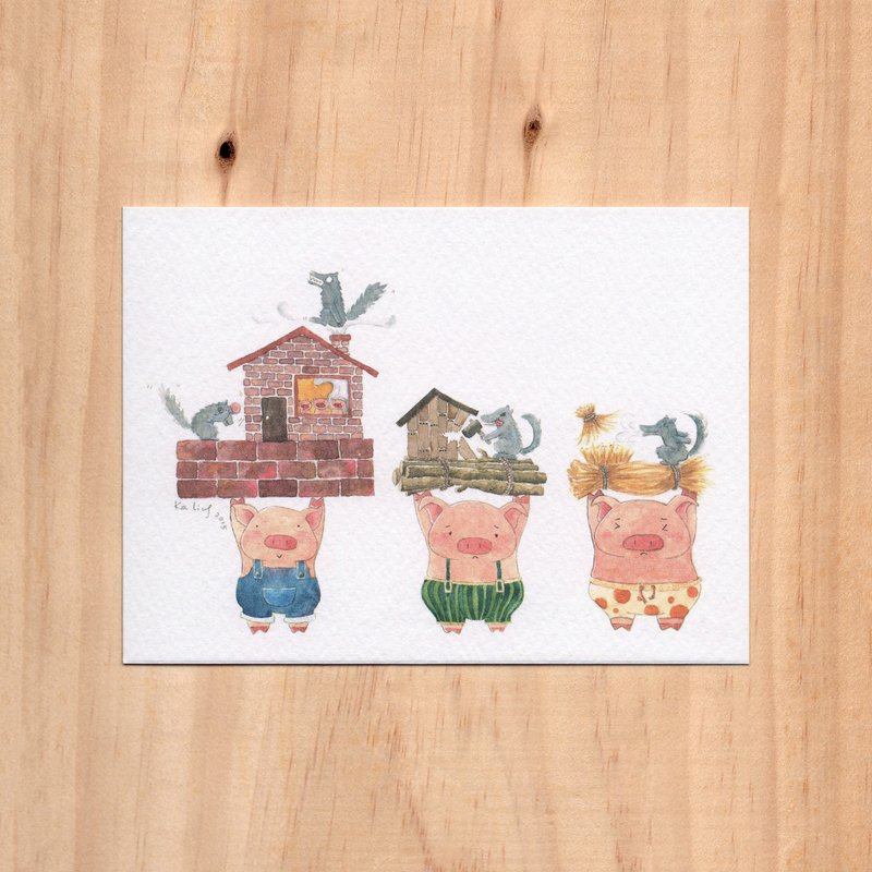 <中外民间传说 - 三只小猪> 水彩插画明信片