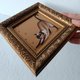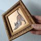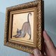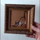 图片尺寸为 3.9*3.9 英寸(10*10 厘米)。这只猫是在金色背景的纤维板上用油画颜料画的。镶框。