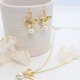 项链与耳环套组饰品。花朵颜色提供金色与银色。