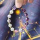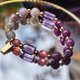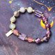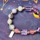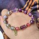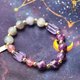 层叠交错的紫色光谱如旋律般跃动,柔和与神秘并存。主石选用高透明紫水晶方柱,搭配彩锂辉与雾紫调琉璃珠,交织出一种疗愈与坚定交融的气质。适合沉静而不失光芒的妳,为日常穿搭增添温柔而自信的色彩。