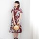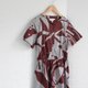 - 夏日本制日系复古剪裁几何图形印花纯棉透气红豆灰色短袖古着洋装
