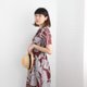 夏日本制日系复古剪裁几何图形印花纯棉透气红豆灰色短袖古着洋装-D405