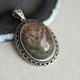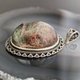 天然水滴彩幽灵水晶,原石切割打磨,形体饱满,幽灵体为绿、紫、橙、豆沙红色,灰调渐变色,景致极美, S925复古银镶嵌,大方雅致。
