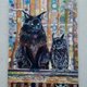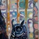 原创画作《黑猫与猫头鹰》 油画画布