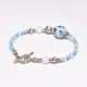 这款手链由淡蓝威尼斯古董珠、蛋白石玻璃、醋栗、凯伦银和海蓝宝石制成。