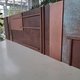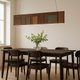 枝形吊灯由一系列矩形金属面板组成,每块面板都具有独特的氧化表面。从深色铁和黑铜到鲜艳的绿色铜锈,纹理和颜色的相互作用产生了迷人的视觉对比。精致的雕刻直线增添了深度和几何复杂性,使其成为真正的杰作。