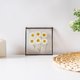 这款手工制作的植物相框,以六朵精心压制的真雏菊为灵感,精心保存于玻璃板之间,并以深色金属相框装饰。雏菊在许多文化中像征着纯真、和平和新的开始。