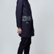 - 厚羊毛长版大衣、中段异材质拼接缇花面料。