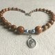 金属坠饰: 圣女小德兰圣牌(手中捧着耶稣十字架苦像及玫瑰花)