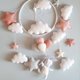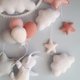 Mobile with a cute bunny on balloons among light blue stars and clouds