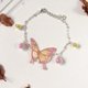 < 手绘粉红纹理黄色波浪纹燕尾蝶玻璃小球手链 手錬 >