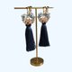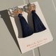 在散发透明感的透明缎带零件上,叠加了淡粉色系的小花珠饰,并以深邃的宝蓝色流苏点缀整体,营造出轻盈与沉静并存的色彩搭配。随着每次摆动,都能为您的耳畔增添一份雅致的存在感。