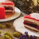 【成分】:优格慕斯、黑莓慕斯、覆盆子库利、黑糖达克瓦兹、覆盆子镜面