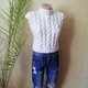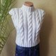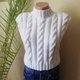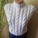 时尚短背心,高立领。我正在编织一件带有辫子图案的背心。轻盈而温暖。人体模型尺寸 M。