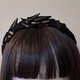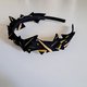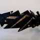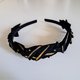 - 以黑与金的对比构筑出俐落节奏, 手工剪裁的厚毛层叠交错,如立体几何在发间流动。*厚毛烫金烫钻后裁剪呈几何形状,随机堆叠缝制成独一无二的发箍,轻盈却有份量感,低调中藏着光泽与个性。