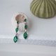- 材质:银镀白金,纳米宝石祖母绿 尺寸:耳环长约45mm 宝石尺寸:3*6mm、4*8mm、5*10mm