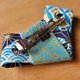 由和服腰带的蝴蝶结的概念设计,手工栽切布条,制作成简约大方的蝴蝶结造型,用台湾设计的如意线,搭配水引编绳技法,编织成如意结,装点在大方结上,有如画龙点睛一般,将和服元素容入平时穿搭。