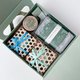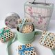 复古繁花烫金礼盒x1(尺寸:16.3x16.3x5.2CM)、缎带x1、提袋x1、满月花饼手工香皂120gx4(四色各一)