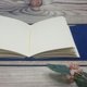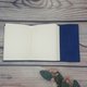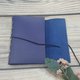 手工制作的笔记本,采用海军蓝仿皮革封面。以民族风格的黄蓝色蜡棉线缝制。内页采用米色护眼纸。整本皆为手工缝制。
