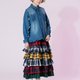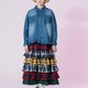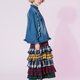 :EMPHASIZE袖子下摆荷叶边设计复古刷白牛仔衬衫-深蓝色