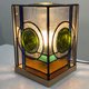 这款氛围灯巧妙结合了蒂芙尼彩绘玻璃工艺与独特回收玻璃瓶再造。透过不同纹理、透明度与色彩的玻璃片——沉稳的琥珀、清新的绿、深邃的蓝与通透的白,构筑成一幅抽象而富有层次的光之画作。中央内嵌的再生绿色玻璃瓶,在灯光点亮时散发出独特的温暖萤光,成为空间中最引人注目的焦点。