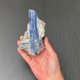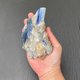 蓝晶原石被称为养晶神器,不但可为其他水晶消磁净化和充电,养发晶和超七最好,可使它们色泽更漂亮更有彩光,还可养矿物同时消棉。