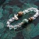 天然双A白水晶老型珠翡翠手链,天然双A纯净体老型珠,搭配天然奇楠桶珠,天然翡翠珠,搭配925银隔珠、小鸟配件。
