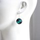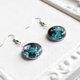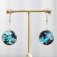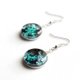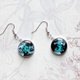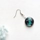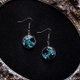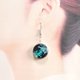 以漆黑为背景,蓝绿色闪闪发光,如萤火虫玻璃般美丽的耳环。