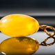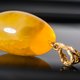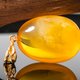 这款吊坠是用琥珀制成的真正艺术品。它造型优美,橘黄色的色泽令人心旷神怡,很容易吸引人们的目光。在透明的石头内部,有美丽的云朵,形成了独特的画面。