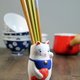 陶瓷后方中空有圆洞,可以作为小笔筒放笔、刀片等小文具,也可以放置小叉子、筷子等餐饮用具,非常实用喔!