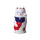 本商品是左手举起招福的招福猫,招福猫手边抱着一条鱼,陶质材质配合手绘上色,非常可爱~~