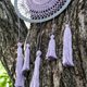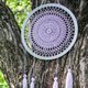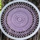A dream catcher is a gorgeous bohemian wall hanging. A beautiful lavender crochet doily is attached to the wooden ring.