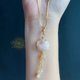 下方串饰天然珍珠、水晶与樱花玛瑙珠,细节丰富、层次灵动。