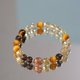 水晶信息:黃水晶,茶晶,金虎眼石,黑金超,金發晶(8-10mm)
