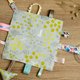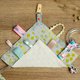 20cm×20cm,表布/日本二重纱、韩国豆豆布,内有响纸,并附手摇铃、奶嘴夹。