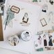 除了行事历女孩以外,还有许多手帐的图,周围也有一些装饰色块可运用,一卷纸胶带就可轻松拼贴出缤纷可爱的画面。