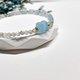 淡蓝色的海水蓝宝石如晨曦初露,清澈而宁静;搭配细致的拉长石与金属点缀,仿佛微光在腕间流转。中心的貔貅雕刻石珠宛如灵性的护符,静静守护着配戴者的内心平衡与柔韧力量。
