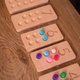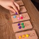 这个木制玩具是用来学习数字的。包含在蒙特梭利教材中。它可以帮助孩子尽早学习数字。同时,这块板上有数字,并且有与该数字一样多的孔。玩具包装内有 55 个彩色绒球。透过将这些绒球放入孔中来学习计数。孩子的智力透过这个玩具得到发展。儿童的注意力和手眼协调能力也会发展。学前班的数字正在学习中。这款木制玩具完全天然,由山毛榉木制成。它对健康无害,不含任何染料或有毒物质。