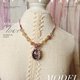 👉主石为幽灵水晶,项链搭配红铜钛晶扁珠及黑金碧玺发(黑金超七),以玫瑰色的蜡线为主色调,衬托出温柔复古的感觉。