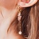 红色系桔梗花搭配珍珠的金色系长耳环,适合冬季氛围衣物