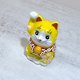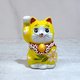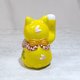 以明亮黄色为主调,搭配粉红色、白色与绿色细节,猫咪举起右手象征招财🌸