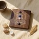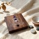 以六芒星为核心的神圣几何图样,先以雷射雕刻定线,再以手绘描白增添手作温度,并点缀手工黏贴的天然石(如:紫水晶/青金石/粉水晶/黑玛瑙)。8×8 cm 黑桃木方盘,小巧不占位,摆在书桌、玄关或香氛旁,低调却有存在感。