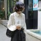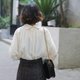 在落肩的肩线处与袖口都做了抽小碎褶的处理